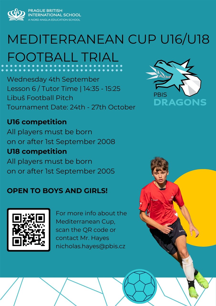 Our first exciting tournament is already upon us with PBIS Dragons taking part in the Med Cup this term! Check out our poster below for more details.