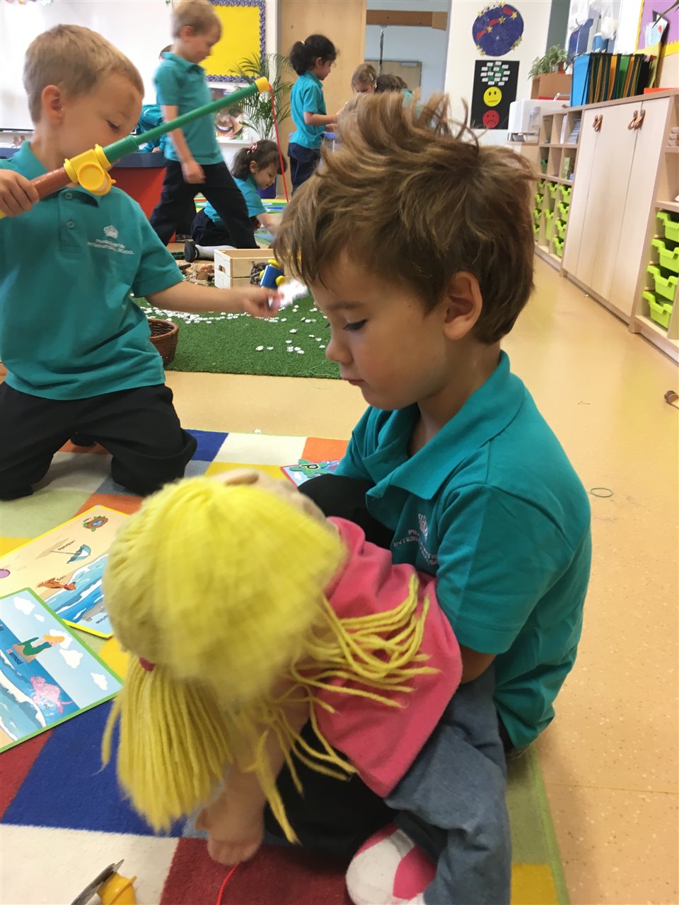 It is incredible to observe how quickly the children are getting used to our routines. We have been having circle times each day where we sit together, listen to a story, play a game or sing songs. At the beginning of the year especially we are practising sitting nicely in circle time, using our listening skills and for some of us learning to wait for our turn, It’s very tricky when everyone is excited. Our focus this week has been investigating where everything is in the classroom and making sure we put things back in the correct places. I must say the children have been brilliant at tidy up time, even spotting that the train carriage doesn’t belong in the car box!
