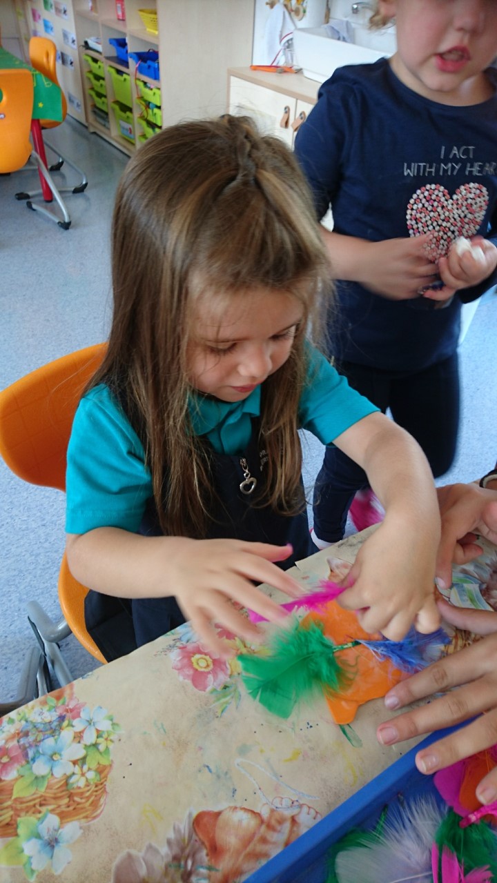 We have been learning the routines of the day; going to lunch, being independent in dressing, and making our way through the school to our first P.E. class of the year with Miss Jo and Miss Adela. The children have really settled in and the staff have loved seeing smiles on their faces when they arrive and leave each day!