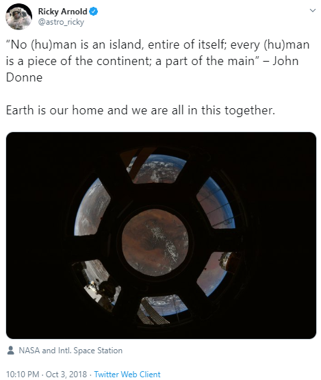 Mr Arnold rounded off his talk by sharing the tweet he posted on his final day at the space station, noting that these are also principles which we can fully embrace in international school communities.