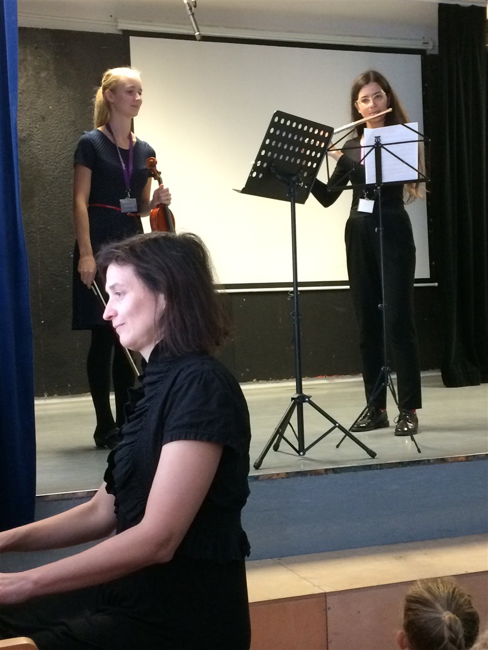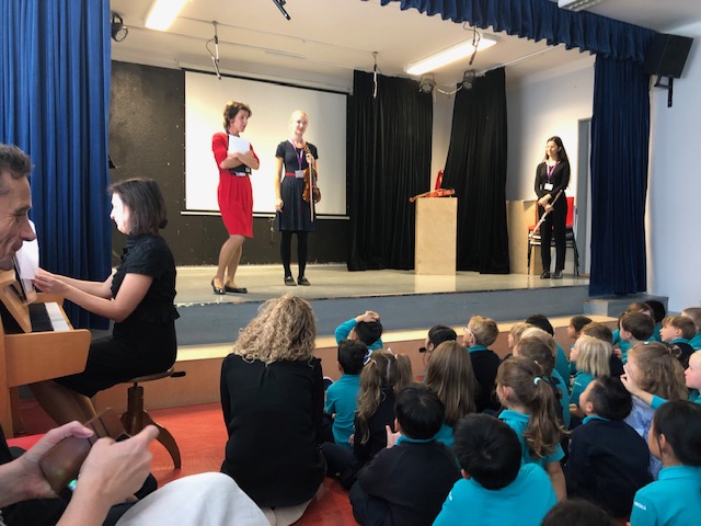 The whole of Primary were treated to performances on piano, flute and violin during assembly on Monday. They learned a little about the instruments themselves as well as listening to the musicians playing. Becky and Scarlett even got to play the violin! Enjoy the photographs and video clips. If your child is interested in learning a musical instrument, please take a look at the ISMFA website for more details: