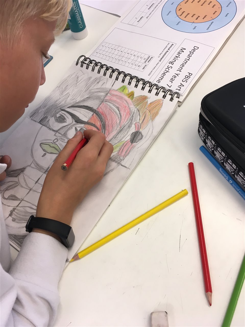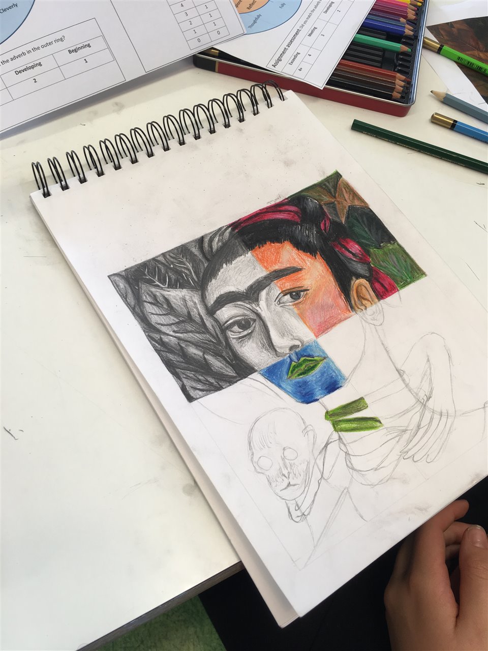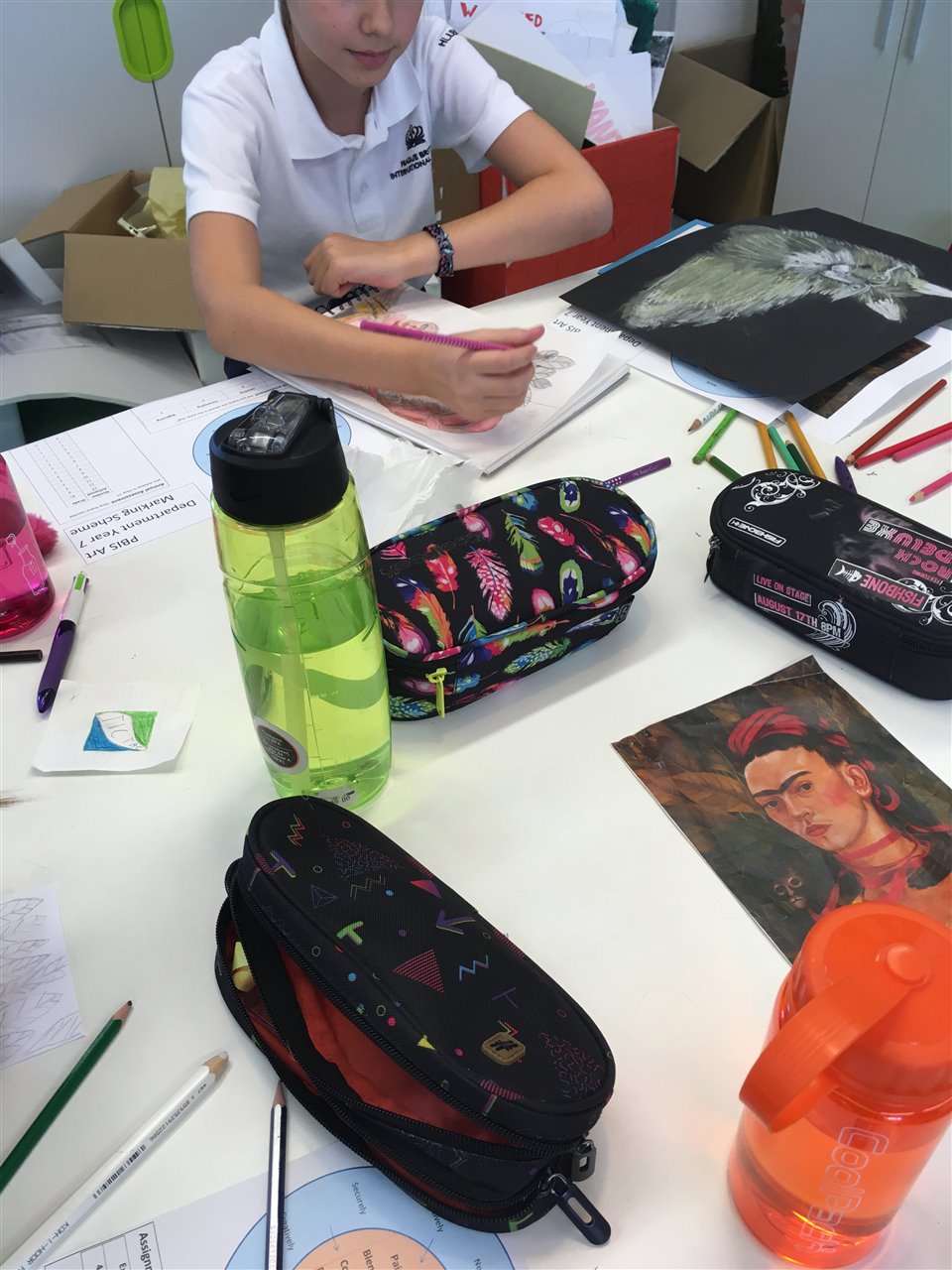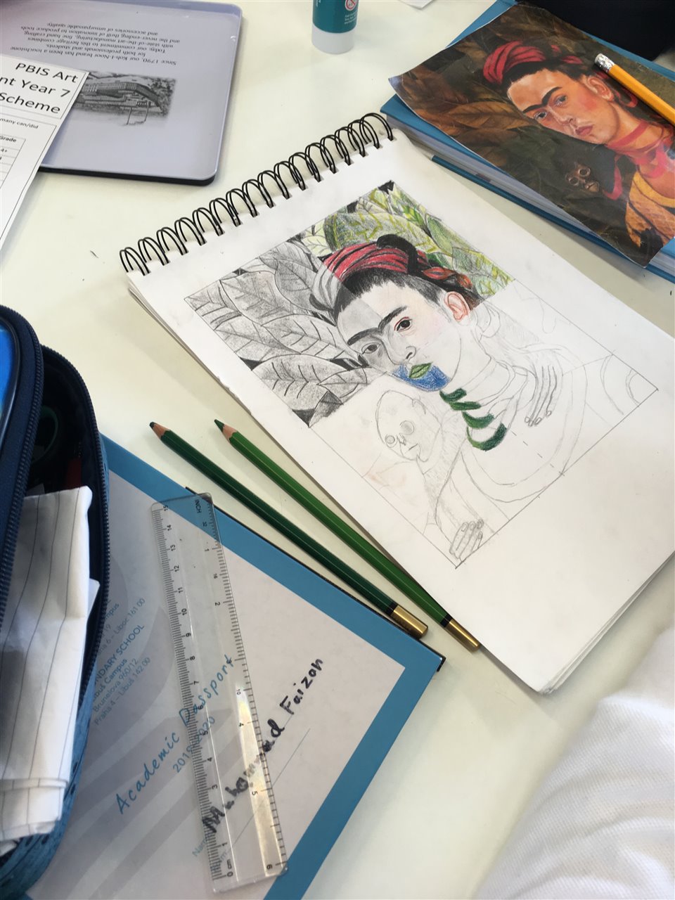 Y7: Who am I? (Self Portraits). Homework is to research Frida Kahlo’s life and art work.
