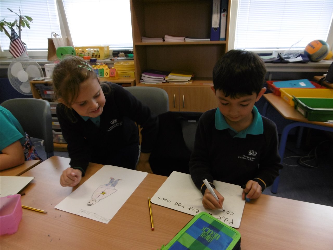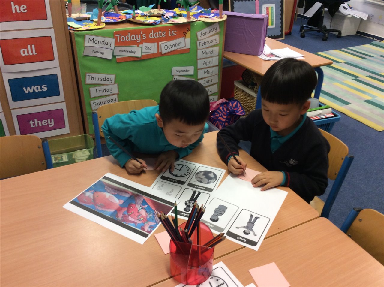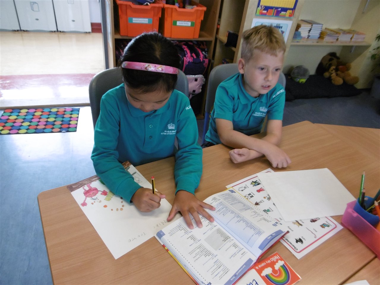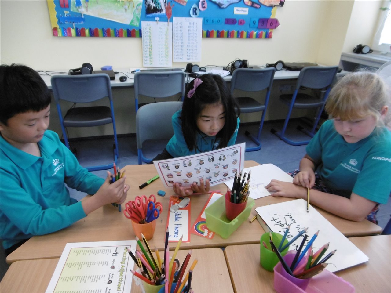 The interactive whiteboards really helps to learn vocabulary; while working in pairs helped us crack the spelling code.