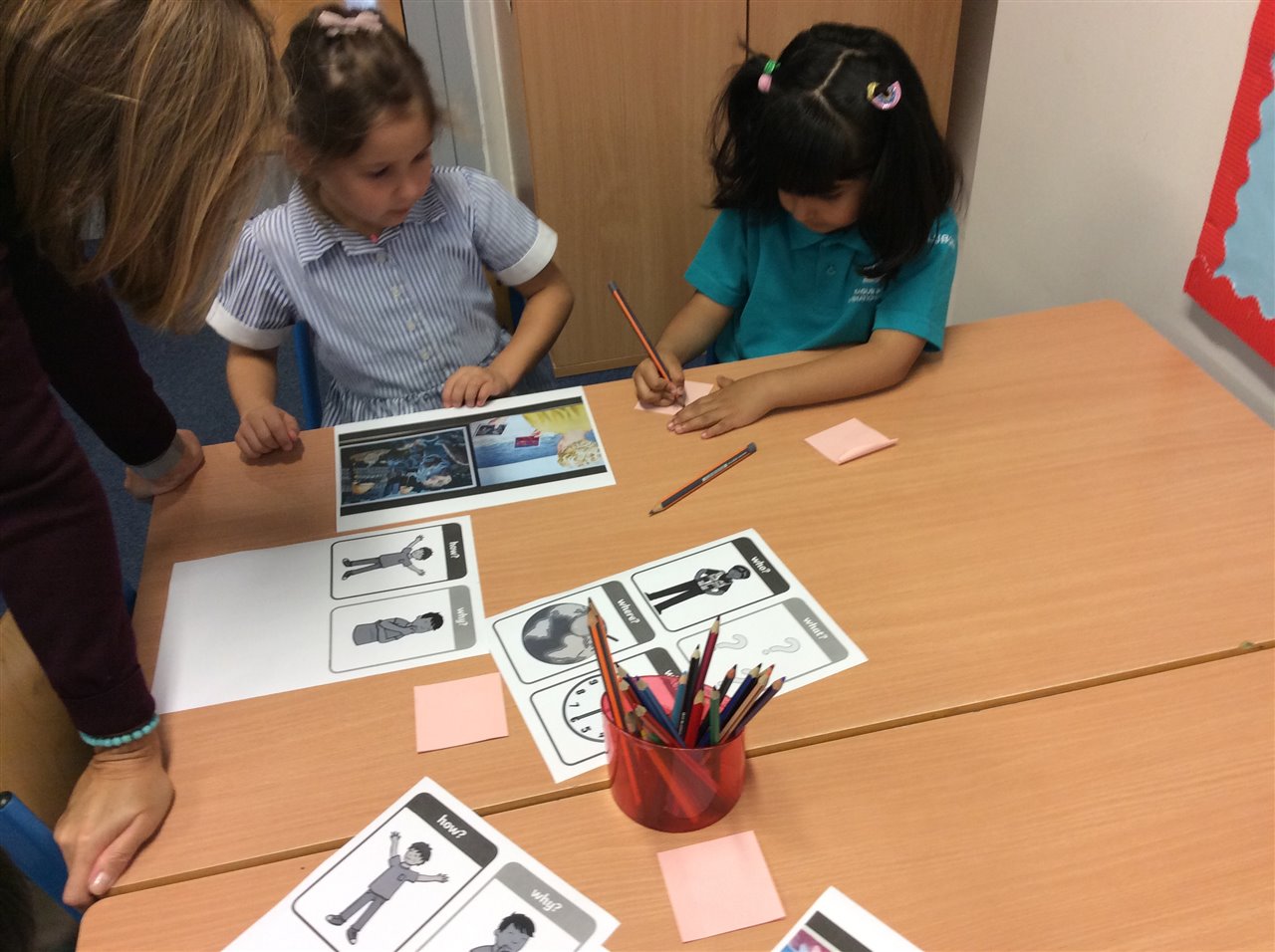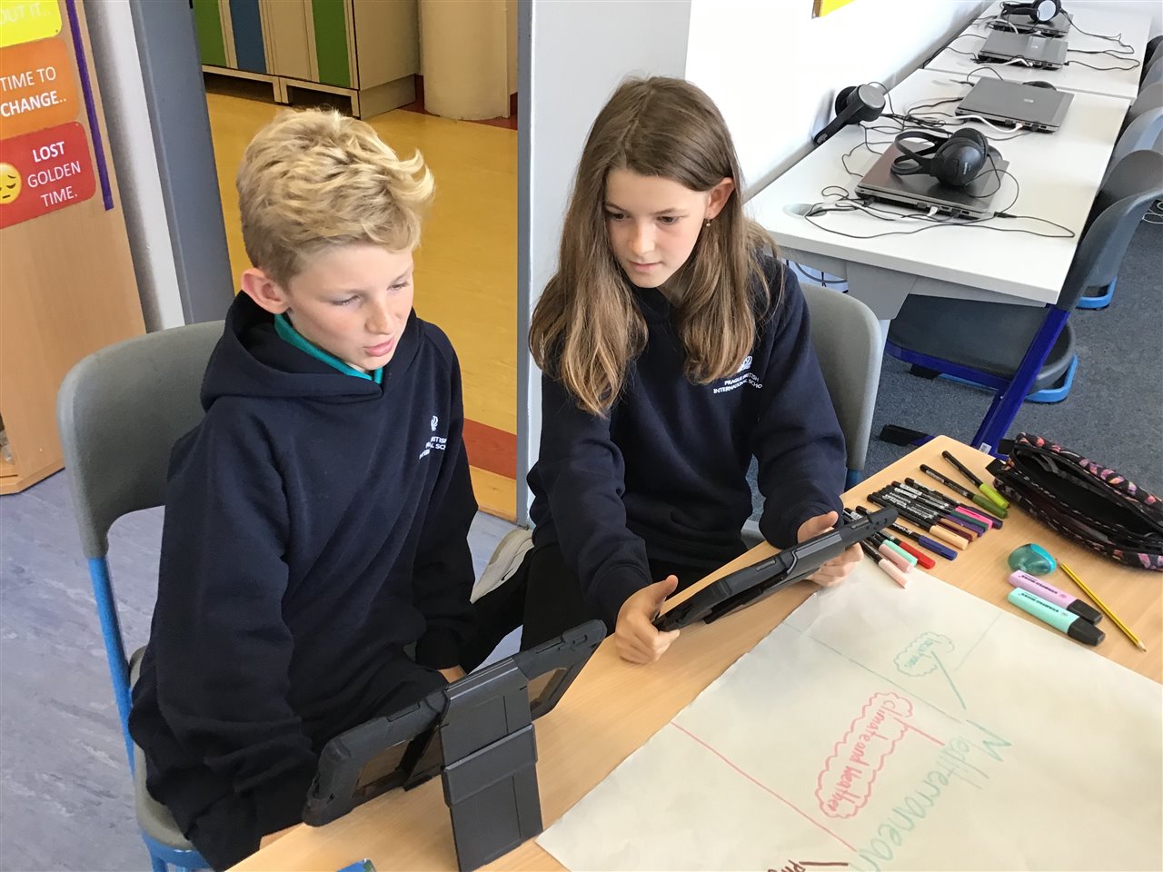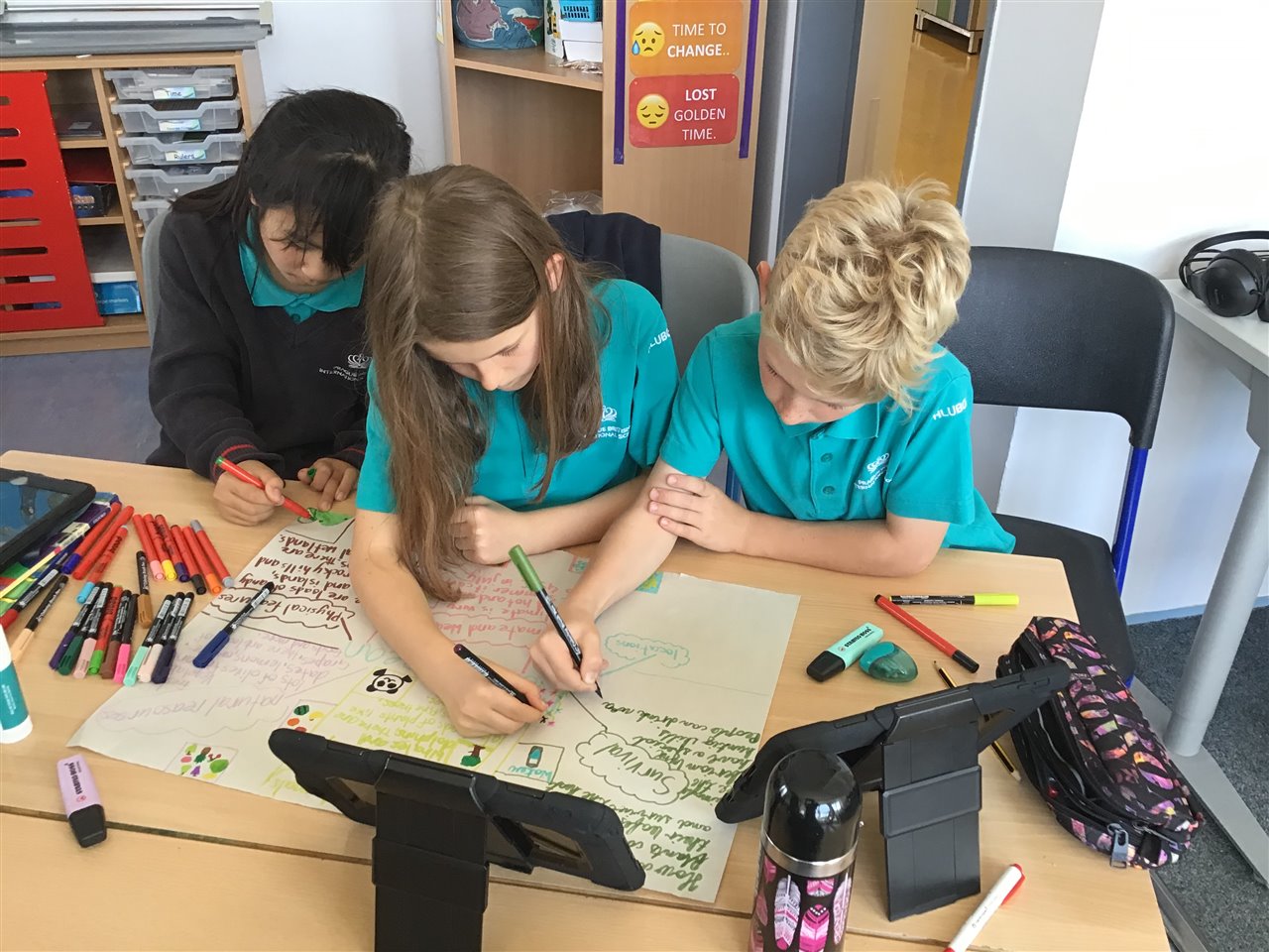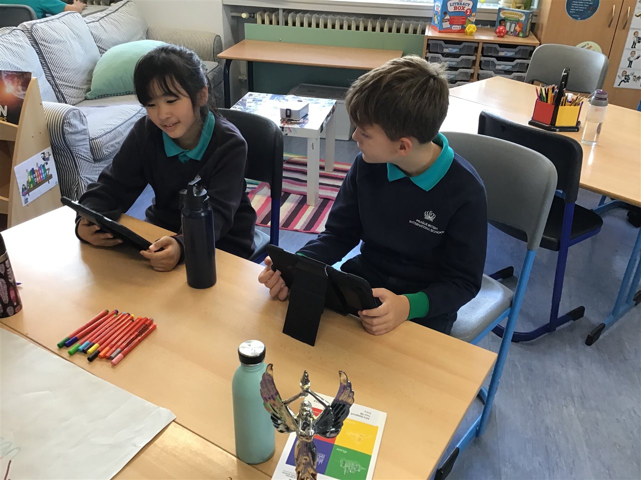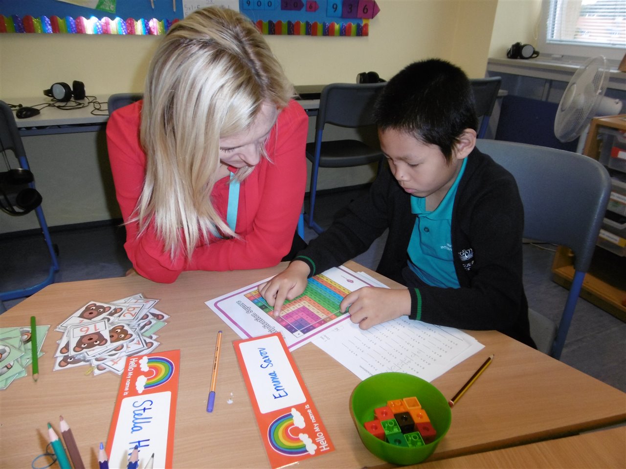 The interactive whiteboards really helps to learn vocabulary; while working in pairs helped us crack the spelling code.