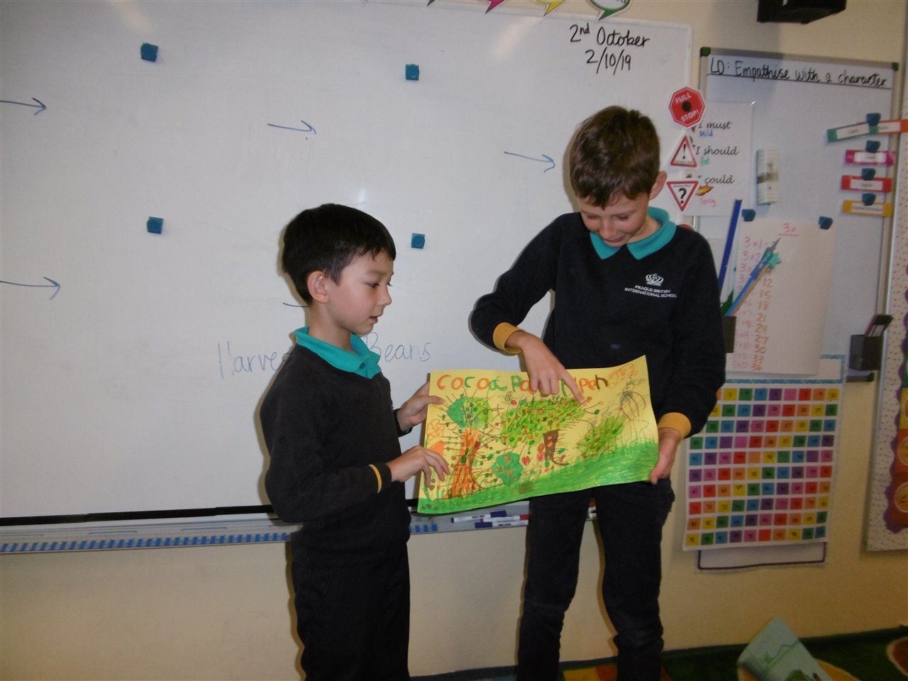 In CC we have been learning about the extraordinary journey of the cocoa bean before it eventually ends up as a delicious bar of chocolate that we can buy in the shop. We won’t be able to eat chocolate again without thinking of this marvelous journey and the hard work that goes into growing and collecting cocoa beans! We also put on our geography hats and dived into the atlases to find out where cocoa beans are grown.