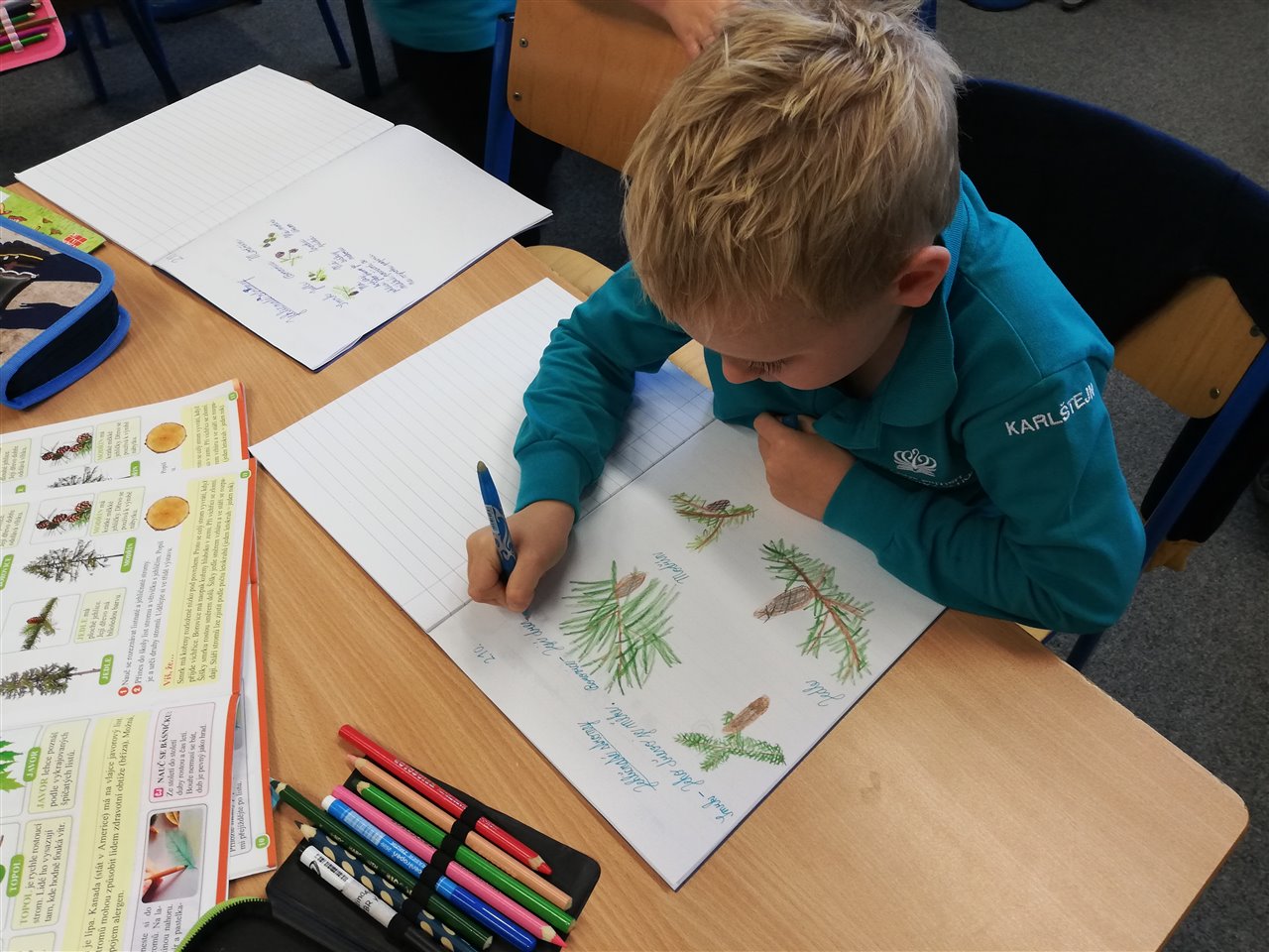 The lions have been busy this week, celebrating autumn and thinking about “Pumpkin Soup.” We have decorated pumpkins for our display boards, as well as collecting leaves, conkers and pine cones. Wednesday, we took our first walk to Divoka Sarka and the children were very excited to be out in nature. We practised looking and listening and being safe when we cross the road. Next week, we will continue to look at autumn and fall harvest, beginning with our trip to the pumpkin farm!