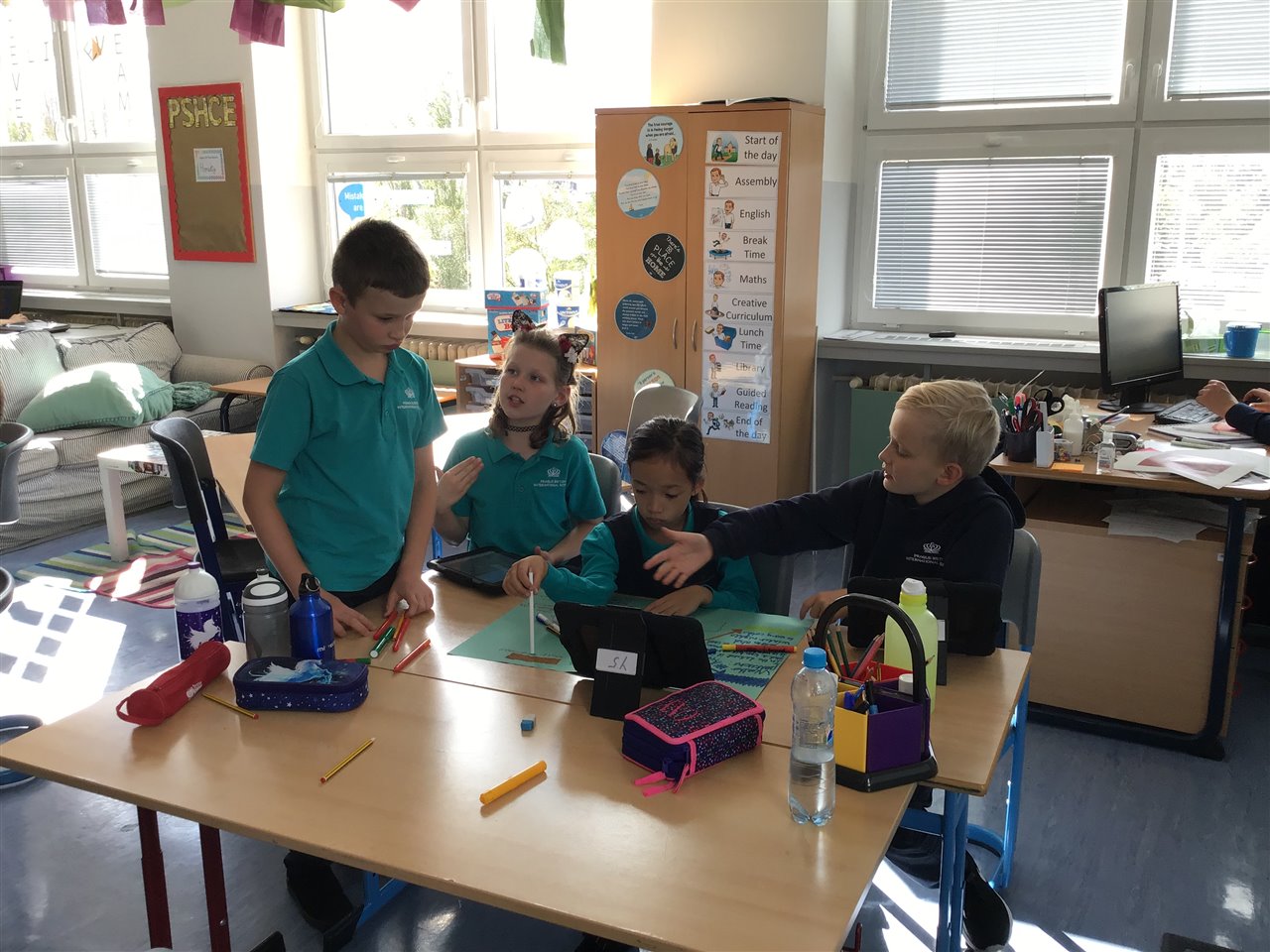 In Year 4 this week we revised on school things and places in the school. Children were able to read complicated sentences and match them with photos. We watched videos to illustrate this topic.