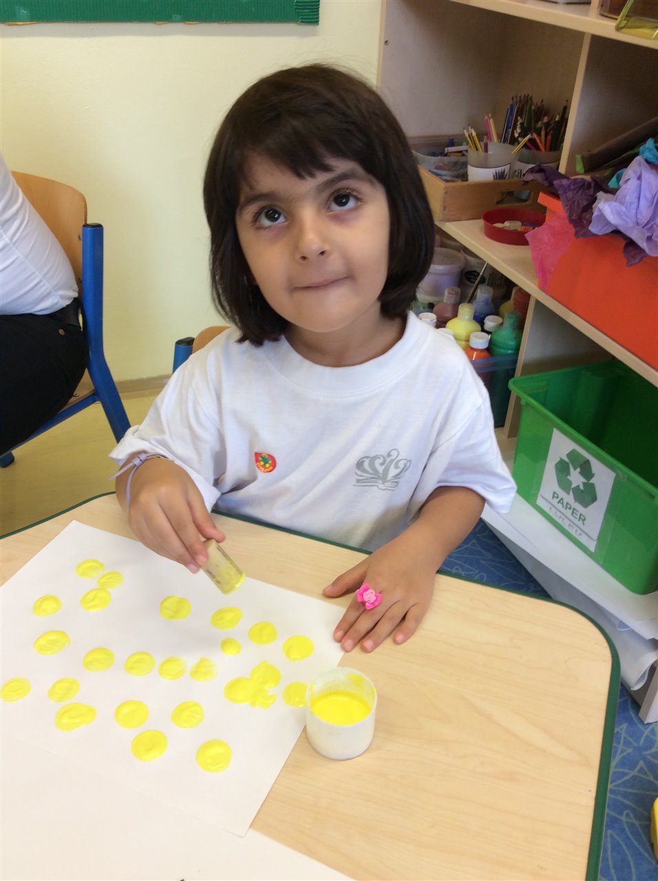 The lions began by looking at colours with the help of the story “Brown Bear, Brown Bear, What Do You See?” We practised naming the colourful characters, and used soft toys and puppets to help us tell the story and sing a song. We made colourful balloons, getting our fingers sticky in the process. We even had our first music lesson with Miss Higgins!