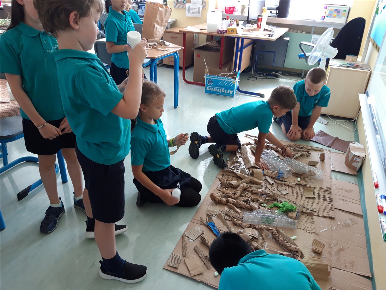 Taking inspiration from our ‘Remarkable Rainforests’ unit, 4A and 4B used different materials to explore making three-dimensional rainforest art. Please come along to our art exhibition on Monday morning to see our work.