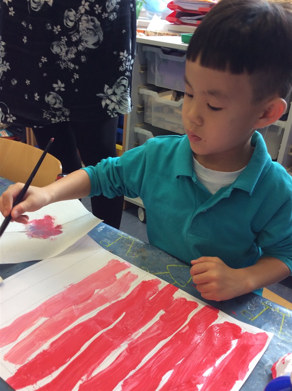 In CC, we learned about the seasons and what we wear in different types of weather. We continued to explore materials and their properties and we went on a classroom scavenger hunt to find all things rough, smooth, transparent, shiny and stretchy. We learned about the artist Paul Klee and practiced creating tints in the style of his work.
