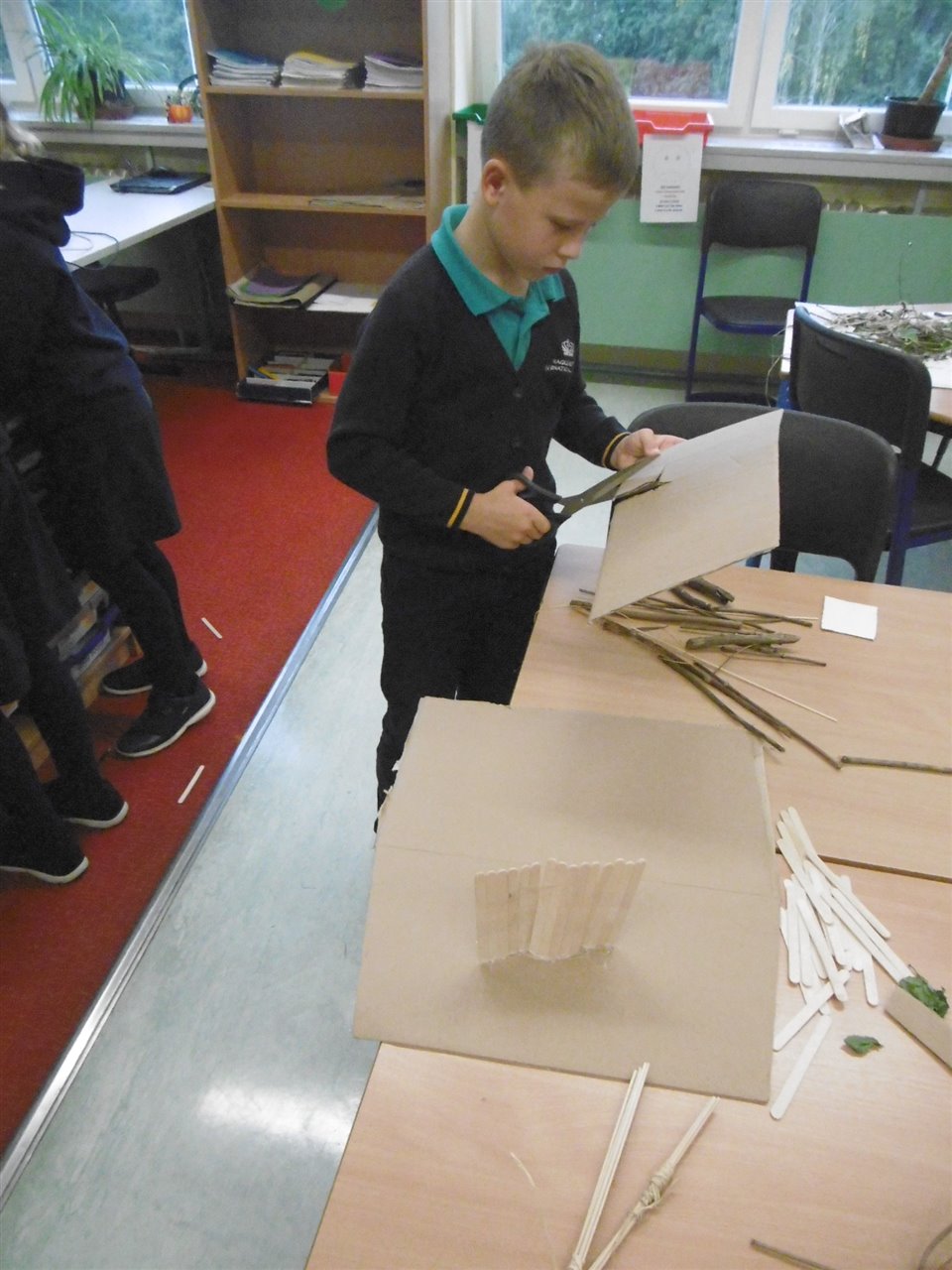 In CC the children have put their metaphorical building hats on as they have studied rainforest homes. After thinking about the materials and fastening techniques these homes employ the children worked well in groups to produce their own versions of a rainforest home with impressive results.